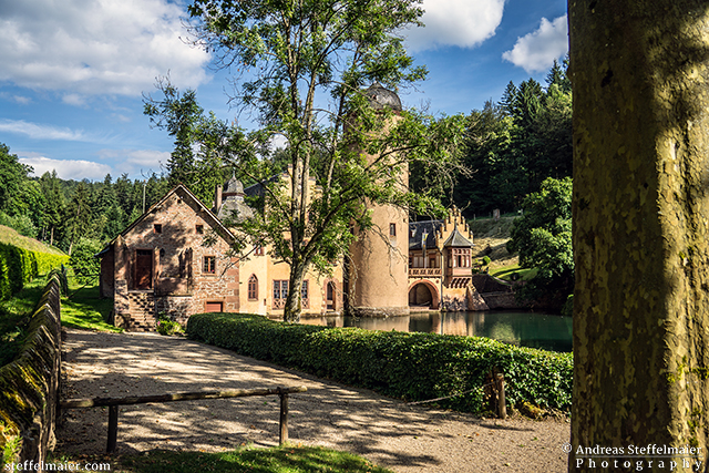 The beautiful #castle of #Mespelbrunn was built from 1427 on by #knight Peter Echter of Mespelbrunn close to the unexploited forest around #Aschaffenburg in #Bavaria. Back then the forest was often used by bandits as a #hideout from their raids, and over the following generations the presence of the knight’s castle made the area safe again – with the castle ultimately turning into a dreamy location for tourists.